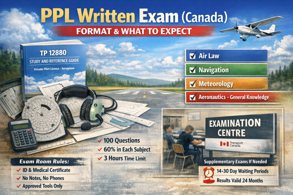 PPL Written Exam Format & What to Expect (Canada) Getting ready for your Private Pilot Licence (PPL) written exam in Canada involves more than just studying meteorology, navigation, air law, and general knowledge. Understanding the exam mechanics — what you’re allowed to bring, how your score is calculated, what happens if you don’t pass a […]